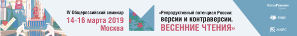 14-16 марта 2019 г. в Москве прошел Общероссийский семинар «Репродуктивный потенциал России: версии и контраверсии. Весенние чтения».